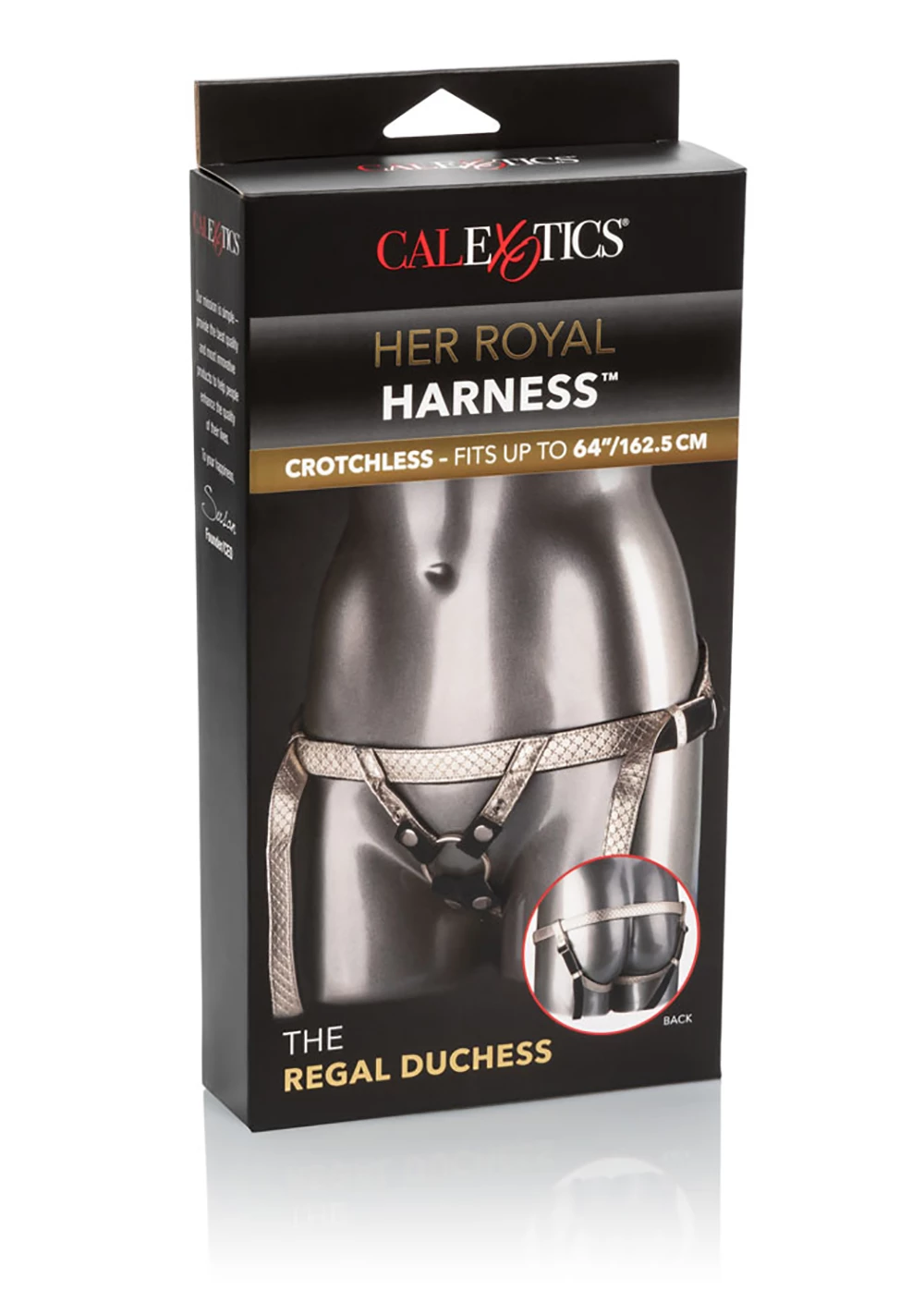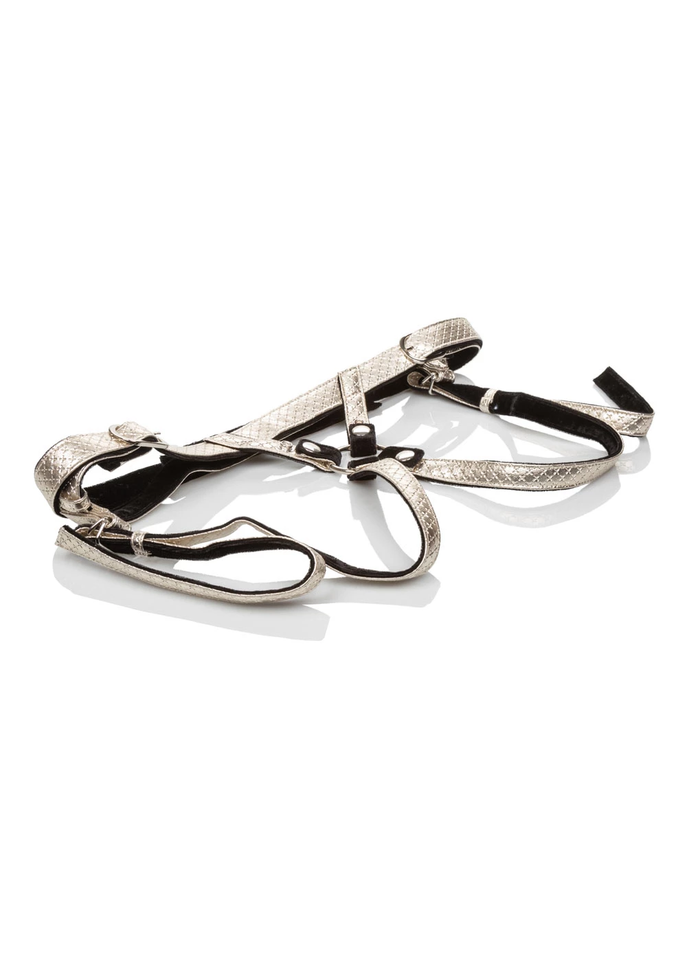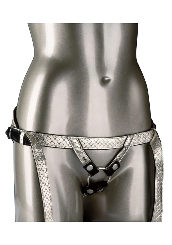 Holding comfortably around the waist, a soft lined band adjusts to a perfect fit as two thin straps reach around to loop under each butt cheek. Simply tug the strap ends to adjust sizing. Around front, set perfectly mid-yoke, one of three sturdy metal O-rings secures a dildo or vibe of choice into place – the ring snaps on and off for quick toy attachment and any possible penetrator switch-ups.