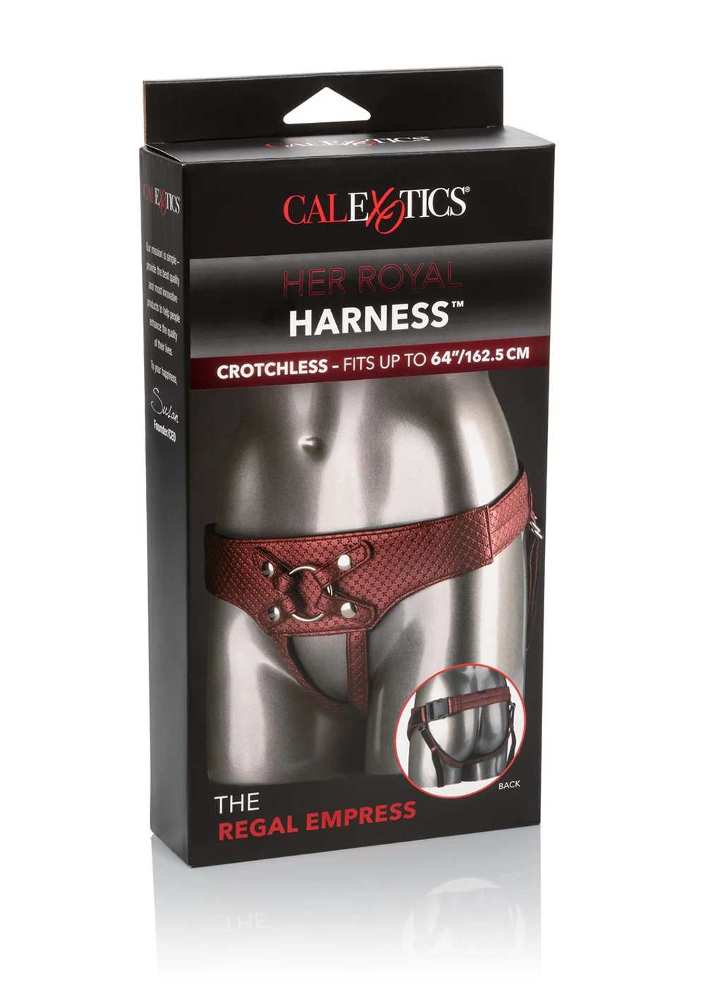 Holding comfortably around the waist, a thicker band buckles to a perfect fit as two thin straps reach around to loop under each butt cheek. Simply tug the strap ends to adjust sizing. Set mid yoke, one of three sturdy metal O-rings secures a dildo or vibe of choice into place – the ring snaps on and off for quick toy attachment and any possible penetrator switch-ups.