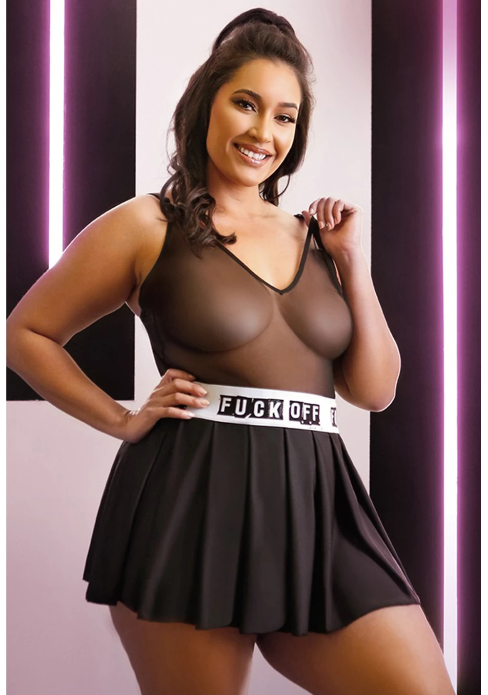 Knife Pleated Microfiber Skirt with “Fuck Off” Elastic (Skirt Only).