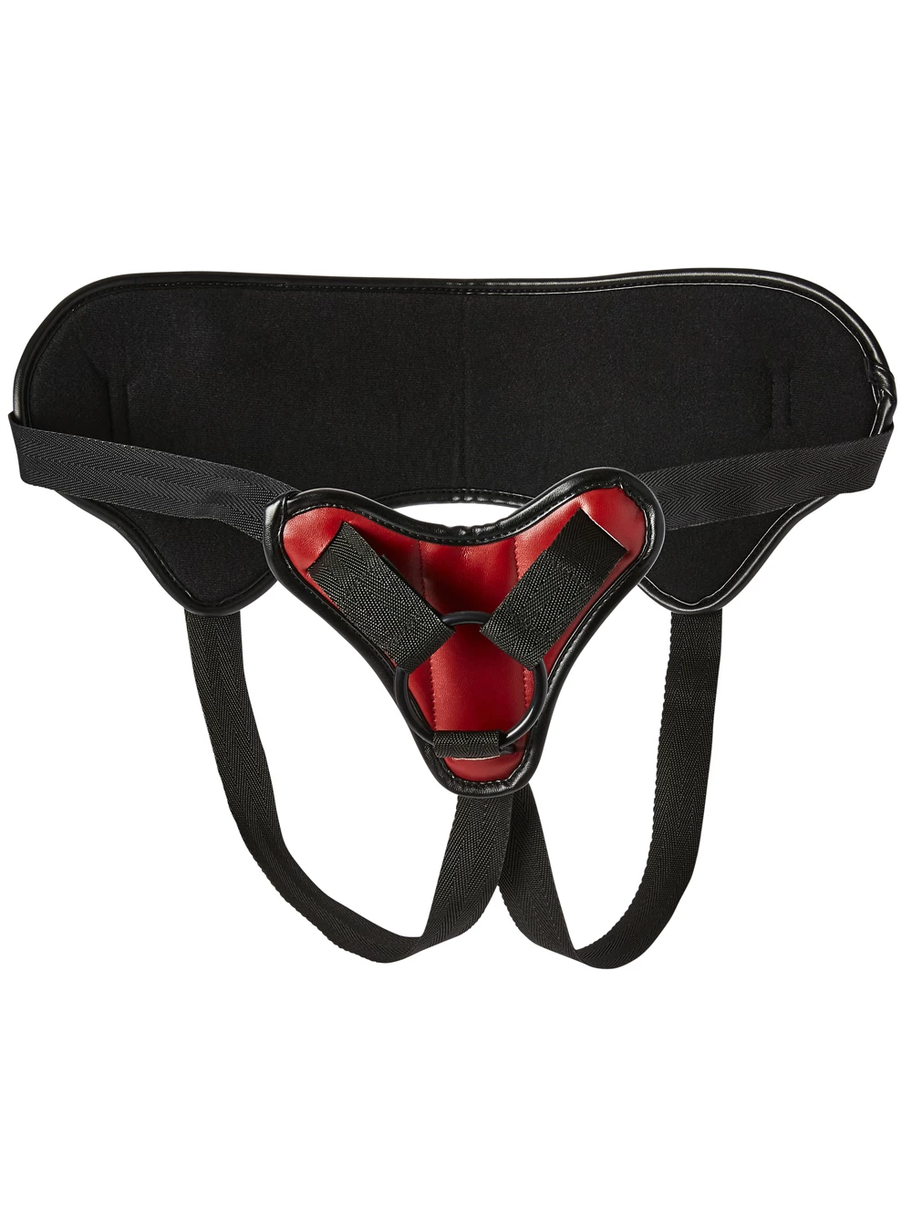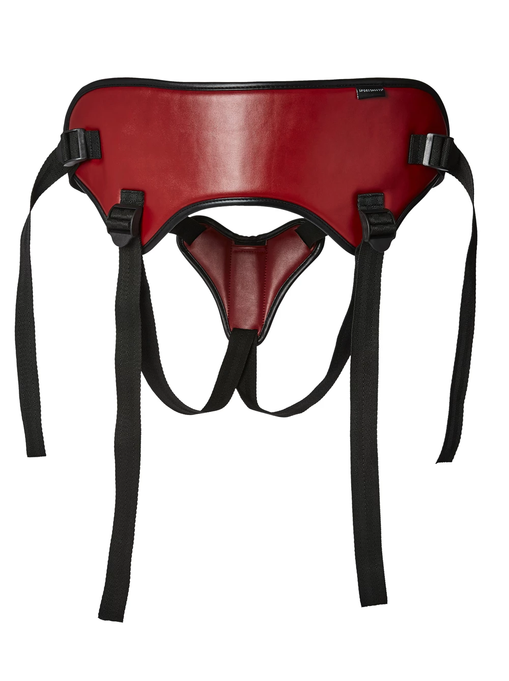 This fashionable, PU leather harness was carefully designed so that nothing gets between you and a flawless strap-on session! Engineered not just to fit, but to be comfortable, functional, secure and attractive, the Saffron Strap-On harness is ready to work with its three additional rubber O-rings (1.5”, 1.75” & 2”), that fit a large array of dildo sizes. Quickly exchange the O-rings with the easy-to-use hook and loop straps. The rear peek-a-boo band fits comfortably around your hips, which provides a solid fit and greater control during use. The fabric lining means this harness feels as good as it looks. The front pouch comes with a small inner channel that allows you to add your favorite vibrating bullet, which means there’s a little bit of fun for everyone!